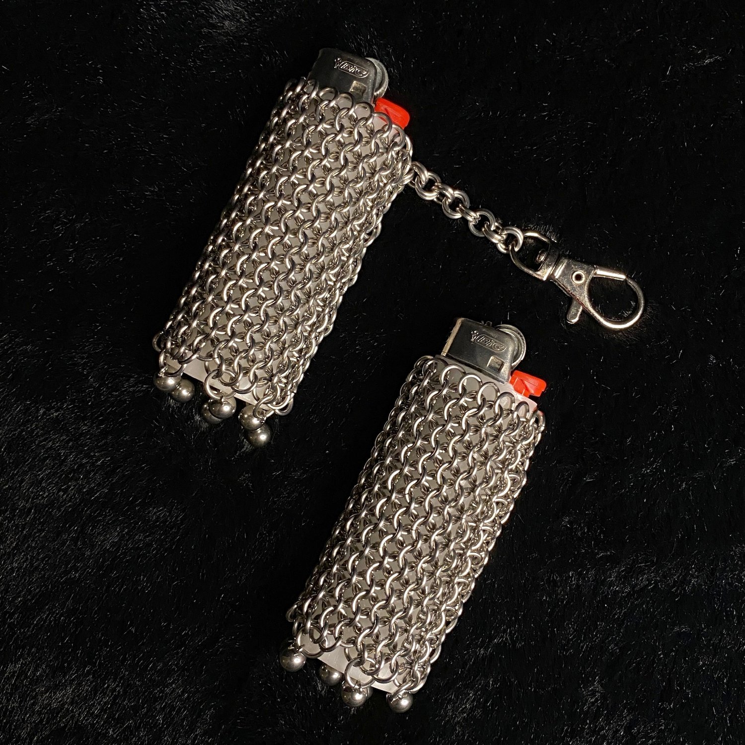 introducing the lighter keychain! featuring european weave made with stainless steel jump rings and beads. these are made to fit standard bic lighters and can be made with or without keychain attachment. please note these are made to order and will take 2-4 weeks to ship. *lighter not included*